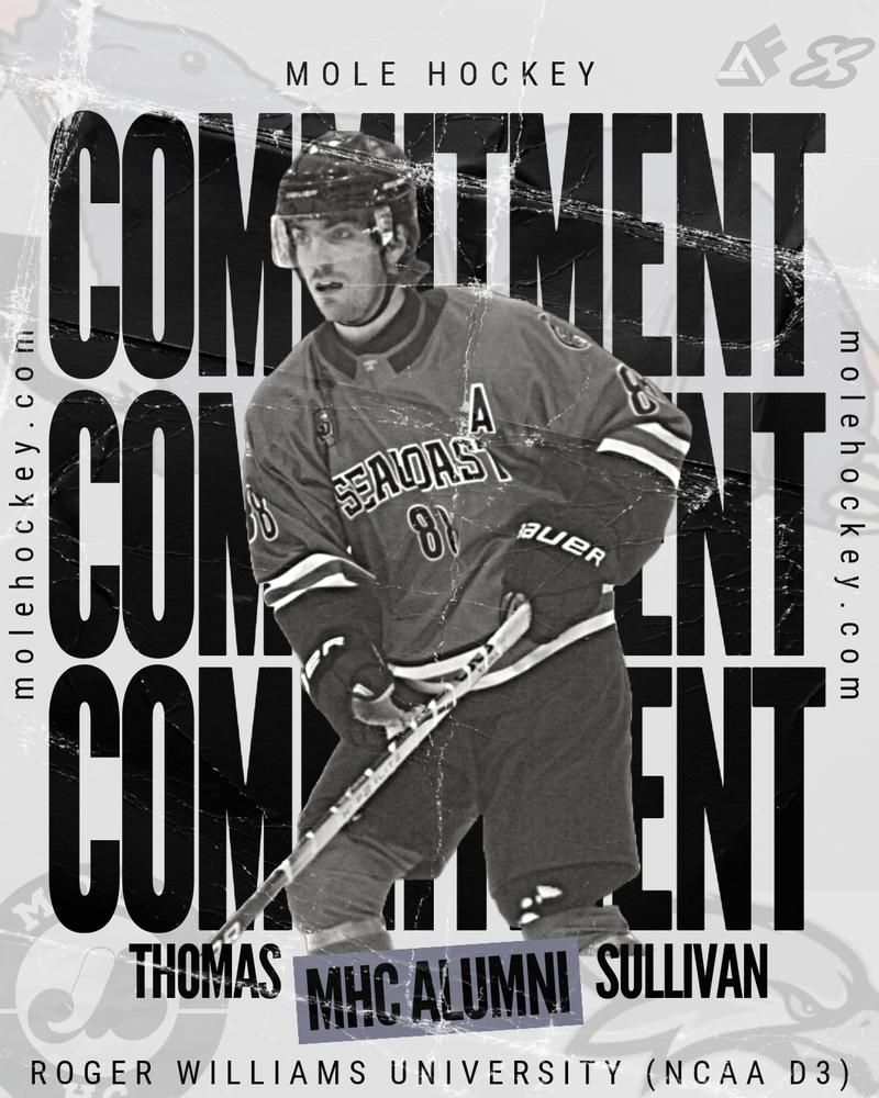 MOLE Hockey LLC is proud to congratulate 2004-born forward Thomas "TJ" Sullivan on his NCAA Division III commitment to Roger Williams University, where he will join the program for its inaugural season this fall.